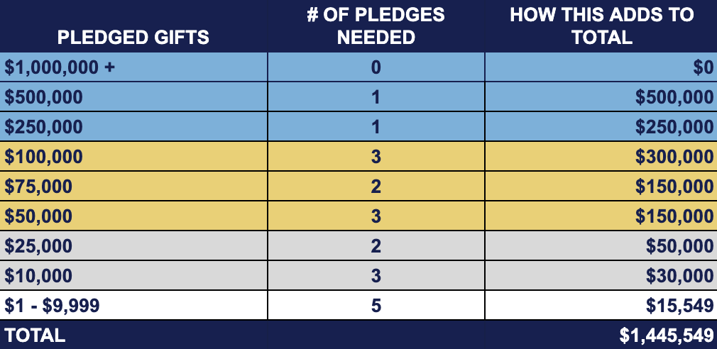 We have reached just over $13.3 MM in donations and pledges, leaving us with just $1.4 MM left to raise. We are 90% of the way there, with a goal to finish fundraising by June of this year.